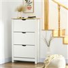 - Holds up to 18 pairs of standard-sized shoes in three tilt-out drawers