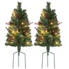 HOMCOM 2-ft H Green Dual Lighted Small Christmas Trees w/ Red Berries - 134 Tips