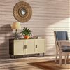 HOMCOM 53.5 W x 27.6-in H Black/Natural Boho-Style Sideboard w/ 3 Rattan Doors