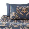 - Classic pattern with a navy-blue base and gold floral damask. Matching print on both pillowcases