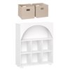 - This playroom storage organizer is crafted from durable MDF with a white-painted finish, and a arched design that complements any space