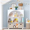 This curved bookcase for kids brings style and smart storage to any playroom or bedroom. The 4 spacious cubbies provide ample room for books, toys, and treasures, while the arched design adds elegant flair. This storage organizer fits neatly in cozy corners while holding up to 95-lb of essentials. The child-friendly height empowers little ones to access and organize their belongings independently. Crafted from durable MDF with a smooth white finish, this shelving unit stands up to daily use while keeping spaces tidy. Each cubby supports 15-lb making them ideal for heavy picture books, building blocks, or toy collections. The sturdy top shelf handles 20-lb for displaying special treasures or decorative items. This cubby storage organizer combines dependable construction with practical functionality.