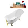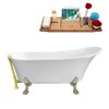 Spoil yourself with this 55-inch Streamline N343BNK-GLD clawfoot tub and tray with external drain. Equipped with brushed-nickel clawfeet and a polished-gold external drain designed to fit 60 gallons of water, this bathtub will bring a personal spa right to your home. The 55-inch Streamline N343BNK-GLD clawfoot tub and tray with external drain comes with a glossy white finish that promises to add a touch of uniqueness to your bathroom area, and is specially crafted from durable acrylic material to withstand any signs of use. And saving the best for last, the clawfoot style of this bathtub makes installation incredibly easy.