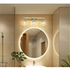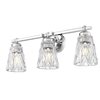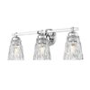 Brilliant chrome finish metal framing offers a radiant element to this glam-inspired 3-light vanity light. Update master and guest bath spaces with a beautiful fixture sending warm illumination through textural overlapping diamond patterning on its clear glass shades, bringing a luxurious look. Dimmable light levels are perfect for customized lighting throughout the day and night.