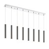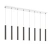 Create a stunning visual with the pearl black finish from this ten-light pendant. Full of charm, the elongated lines and soft glow are beautiful and sophisticated.