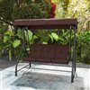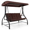 Costway 57-in 3-Seat Coffee Brown Patio Swing Glider w/ Adjustable Canopy