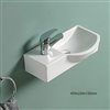 This rectangular sink features a ceramic construction and is designed to be installed as a wall mount vessel. This vessel comes with a white enamel glaze finish. This product is designed for a 1-hole faucet.