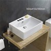 This rectangular sink features a ceramic construction and is designed to be installed as a above counter vessel. This vessel sink comes with a white enamel glaze finish. This product is ideal for a 1-hole faucet.