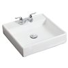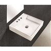 It features a square shape. This vessel is designed to be installed as a wall mount vessel. It is constructed with ceramic. This vessel comes with an enamel glaze finish in white colour. It is designed for a 3h4-in. faucet.