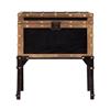 - Opening the intricately designed latch reveals trunk space, perfect for storing living room or entryway accessories