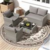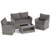 - This 4-piece patio set includes a rectangular coffee table, a loveseat and 2 patio chairs, allowing you to easily rearrange the pieces to fit your garden, porch, balcony or backyard perfectly