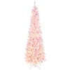 Costway 7-ft Pre-Lit Snow Flocked Hinged Pink Christmas Tree with 300 Warm White LED Lights - 8 Flash Modes