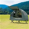- The sturdy metal frame of the camping bed enables the tent to cope with uneven road surfaces while keeping it 18-in above the ground