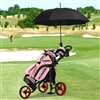 This lightweight, sturdy steel golf cart features a wide body design with 10.5" rear wheels and 9.5" front wheels for balance and easy maneuverability. It has an adjustable handle, seat, and umbrella holder, and includes a large capacity storage bag with an insulated outer layer. Material: Steel Frame, PP with EVA wheels. Dimensions: 51’’ x 29.5’’ x 39’‘-45.5’'. Net Weight: 17.5 lbs. Max Weight: 30 lbs.