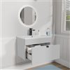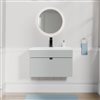 Upgrade your bathroom with the Loft 24-inch Wall Hung Bathroom Vanity with sink in white by Cutler Kitchen and Bath, a stylish and functional solution for modern spaces. This small bathroom vanity maximizes storage while keeping a sleek, contemporary look. It features a durable cultured marble top with an integrated rectangular sink and overflow for reliable everyday use. The soft-close drawer system ensures smooth and quiet operation while keeping essentials organized. The floating wall-mounted design saves floor space and makes small bathrooms feel more open. Crafted in Canada, this vanity offers durability, storage, and modern style.