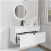 Upgrade your bathroom with the Loft 30-inch Wall Hung Bathroom Vanity with sink in white by Cutler Kitchen and Bath, a stylish and functional solution for modern spaces. This bathroom vanity maximizes storage while keeping a sleek, contemporary look. It features a durable cultured marble top with an integrated rectangular sink and overflow for reliable everyday use. The soft-close drawer system ensures smooth and quiet operation while keeping essentials organized. The floating wall-mounted design saves floor space and makes bathrooms feel more open and easier to maintain. Crafted in Canada, this vanity offers durability, storage, and modern style for guest or primary bathrooms.