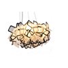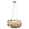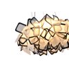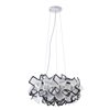 This unique LED chandelier is in a white finish. The frame is made out of metal, and the LED bulb is integrated into the frame. It comes with a white and black acrylic shade in an abstract cloud shade. The adjustable cord links make this fixture suitable for most ceiling heights.