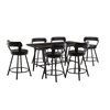 The Appert dining set brings the perfect amount of style to your casual dining room. The table features a dark grey gunmetal frame complete with a built-in wine rack. The sturdy trestle base supports a wooden tabletop finished in brown walnut and crowned with a black rectangular glass insert and metal corner rivet detailing for the ultimate in industrial-chic accenting. Six coordinating swivel chairs echo the stylish look of the table, adding the comfort of padded faux leather seats and backs on angled gunmetal legs.