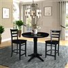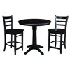 International Concepts 36-in Round Extension Dining Table w/ 2 Emily Counter Height Stools - Black