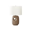 - Contemporary 26"h table lamp featuring a light brown ceramic base with a cut-out design, perfectly blending modern aesthetics with functionality to brighten up any living room, office, or bedroom