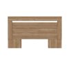 Effortlessly elevate your space with this modern headboard – a stylish and functional centrepiece that seamlessly blends contemporary design with practical functionality. This clever headboard boasts the perfect combination of clean lines and a minimalist aesthetic, adding a touch of sophistication to your bedroom decor. Crafted from high-quality engineered wood, this headboard showcases the natural grain colour variation, bringing an organic touch to your space. Plus, with a one-year warranty, you can trust in the durability and quality of your new brown oak finish headboard.
