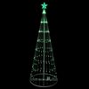 Create a magical wonderland with this LED lighted show cone Christmas tree! It adds glitz to your yard or patio. This grand decor accessory helps you prep up for an extraordinary festive bash. Product Features: Pre-lit with 344 green mini LED lights. Bulb size: wide-angle (concave bulb). Bulb color: green. 4-piece easy assembly (including stand). Crystalline glowing star tree topper. 9-foot black lead cord. Wire gauge: 22. Cycles 9 different dazzling light show effects ranging from slow fade random twinkle fast spiral just to name a few. Additional product features: LED lights use 90% less energy. Super bright bulbs. Bulbs last up to 100 000 hours. Durable non-glass replaceable bulbs. Cool to the touch. White metal frame and stand. UL listed for indoor or outdoor use. 120 volts 60 hertz .13 amps 21.61 watts. Transformer and ground stakes included. Tree needs to be plugged into its own outlet as it will not connect to other lighted items. Dimensions: 9' high x 35" base diameter (at widest point). Material(s): metal/wire/plastic