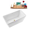 Streamline 55 L x 28-in W Glossy White Acrylic Rectangular Freestanding Bathtub w/ Polished Gold Centre Drain and Tray