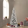 This tree comes unlit, features 899 beautifully flocked tips on metal hinged branches, and a metal tree stand is included.