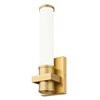 Instill warmth and sophistication with the chic modern gold finish featured on this contemporary LED wall sconce. It pairs a square cuff and cylindrical opal glass shade to create a clean, crisp presentation in your hall, living area, or bath. A dimmable LED light source is perfect for energy efficiency in your modern home.