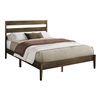Monarch Specialties Walnut Wood Contemporary Platform Bed Frame w/ Horizontal Slatted Headboard - Queen