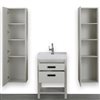 Form meets function with this classic vanity. Its modern lines are accentuated by the integrated sink that gives this vanity an elegant touch. Versatile features include drawers with soft closing doors and 2 detached cabinets, spacious enough to store tow