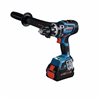The 1/2-in Hammer Drill/Driver is part of the PROFACTOR System, which pairs BITURBO Brushless Technology with a CORE18V PROFACTOR battery to deliver power comparable to high-demand corded tools. The included CORE18V PROFACTOR 8.0 Ah battery is compatible with Bosch 18 V tools and optimized for PROFACTOR tools. It delivers 2x more runtime than GBA18V40. This Hammer Drill/Driver features connectivity (module sold separately), via Bosch Toolbox App to customize settings, set custom angles, receive feedback and set specific angles for the Electronic Angle Detection feature. It has a powerful brushless motor that provides efficient power for up to 1,330 in-lb of max torque. It has variable speed settings: high speed (0-2,200 rpm) and high power (0-550 rpm) and KickBack Control to help reduce the risk of injury from sudden rotational torque reaction in a bind-up scenario. Electronic Angle Detection ensures accurate drilling at angle and 25 clutch settings helps reduce fastener damage.