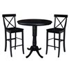 International Concepts 36-in Round Extension Dining Table 40.9-in Set w/ 2 X-Back Bar Height Stools - Black