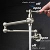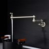 Wall-mounted pot filler with dual swing joint design provides extended reach and flexible positioning across the counter and stovetop, allowing you to fill pots right where you need them.