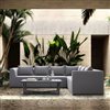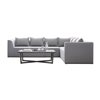 This outdoor sofa and coffee table set extends interior furniture to your outdoor space to enjoy the comfort in a garden environement. Its modular sofa design combinations adapts to any backyard decor. Soft, comfortable cushions and pillows, are covered with olyfin Fabric material to with stand all outdoor weather conditions. Coffee table’s powder coated aluminum frame structure makes it extremely light and sturdy.