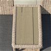 With a look resembling a loveseat, the 2 seats of this Tête-à-tête bench are connected by a wide armrest that can also be used as a tabletop. The tabletop allows you to set your drinks and appetizers while its lower shelf is designed to provide storage space. The bench's compact design makes it a great choice for smaller spaces. It allows you to enjoy a comfortable place to relax.