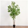 Bring elegance to your decor with our artificial sumac tree. Inspired by a European forest, its branches are adorned with petite, green-hued leaves that add colour into any room. Crafted from high-quality materials, bend the branches for a custom look. The 8-ft tree is housed in a basic nursery black pot, but feel free to DIY in a planter of your choice. Ideal for spaces that embrace a less-is-more aesthetic, this tree offers a whisper of spring without overwhelming its surroundings. Blends with many styles from a contemporary living room to a minimalist office, this tree is great for year-round use, no matter where it’s displayed.