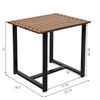 Complete the look of an outdoor patio furniture set with this elegant and durable end table. Featuring a unique, wood slat tabletop and a sturdy, powder-coated black steel frame, this wooden patio table is sure to provide beauty and strength season after season. This small table provides a wonderful spot to place a book, a radio, or a refreshing, cool beverage while relaxing outdoors. Place it next to a favorite patio lounge chair, hammock, or outdoor sofa. The sturdy design is capable of supporting up to 220 pounds. This rectangle side table's contemporary design will complement a variety of other outdoor furniture pieces and patio decor styles. With all of the necessary tools and hardware included, assembling this patio side table is a breeze. This modern, outdoor end table will add a finishing touch to the patio, backyard, front porch, or deck.
