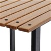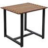 - This sturdy, rectangular side table features an elegant and durable chestnut wood slat tabletop with a black, powder-coated, steel frame for lasting strength and weather resistance