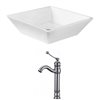 It features a square shape. This vessel set is designed to be installed as an above-counter vessel set. It is constructed with ceramic and it comes with an enamel glaze finish in white colour.