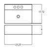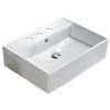 This rectangular sink features a ceramic construction and is designed to be installed as a above counter vessel. This vessel comes with a white enamel glaze finish. This product is ideal for a 3h8-in. faucet.