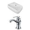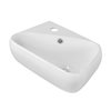 It features a rectangle shape. This vessel set is designed to be installed as a wall mount vessel set. It is constructed with ceramic and it comes with an enamel glaze finish in white colour. It is designed for a 1 hole faucet.