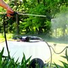 - The 12-ft spray hose with ergonomic thumb control spray gun and adjustable nozzle provides access to hard to reach areas