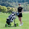 - Ergonomically shaped handle for both right and left-handed golfers; foldable design with 3 removable wheels to save storage room