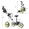 Costway Green Foldable 3-Wheel Push-Pull Golf Club Cart Trolley w/ Seat