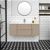 - Modern floating design: This vanity with sink wall-mounted design keeps the floor open and easy to clean, creating a contemporary aesthetic while saving space in standard bathrooms