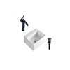 DROP Bath and Kitchen 13.4-in White Rectangular Ceramic Bathroom Vessel Sink Set w/ Black Faucet and Drain