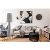 The Carpara floor lamp has an eye-catching yet streamlined design that is sure to make a statement. Finished top to bottom in grey linen fabric, two superimposed conical shapes make up the body of this lamp. The top and bottom section each contain a light bulb which gives the entire lamp a harmonious glow. Complete with an on/off pedal switch strategically positioned on the cord and plug, this floor lamp will be the perfect accent for the office, living room or bedroom.
