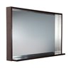 Add style and function to your bathroom. This attractive rectangular mirror is sleek and stylish with clean lines and a retro feel. The glass is recessed from the frame which creates a bordered effect on the top and sides. The ledge shelf along the bottom of this lovely mirror offers an optional spot to hold a soap dispenser, decorative accent or any essentials that you’d like to keep close at hand. This bathroom mirror with shelf has a solid construction and a rich wenge brown finish. It measures 40-in width and is 31.5-in in length—just perfect for taking a quick glance before you head out the door in the morning.