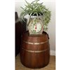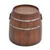 - Features a barrel-inspired design and stained brown finish